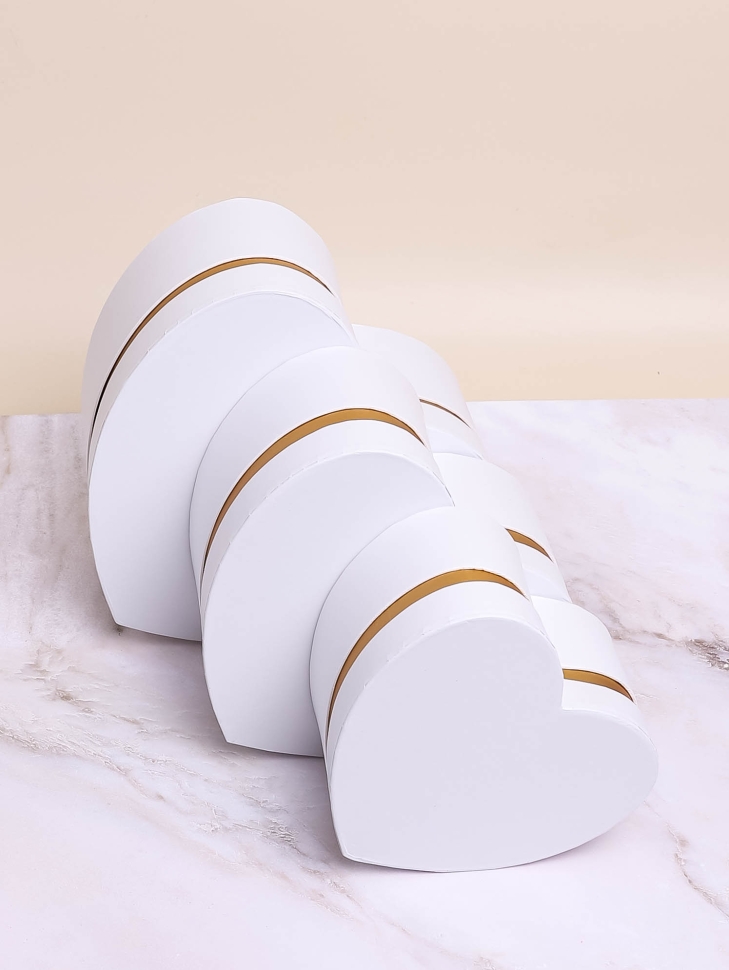 Коробка Сердце набор из 3шт 20х18,5х9,5см с золотой полосой белый