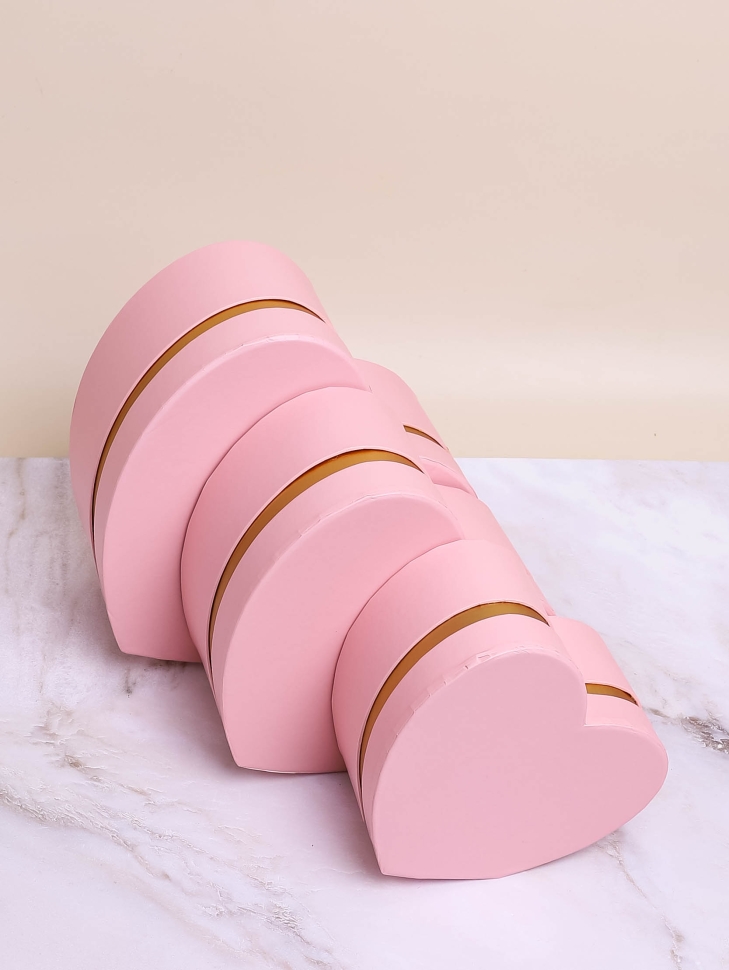 Коробка Сердце набор из 3шт 20х18,5х9,5см с золотой полосой розовый