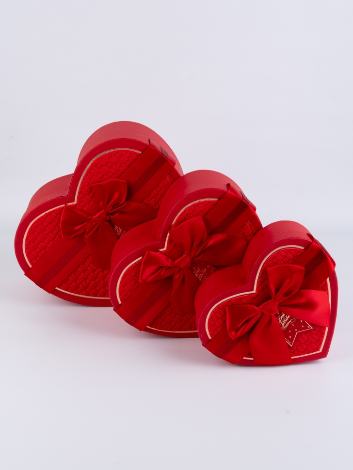 Коробка Сердце набор из 3шт 22х20х9см двухцветный с бантом красный /белый