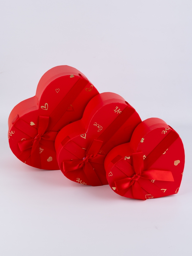 Коробка Сердце набор из 3шт 21х20х9см золотые сердца красный