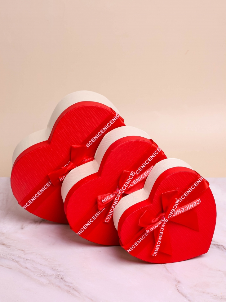 Коробка Сердце набор из 3шт 22х20х9см двухцветный с бантом красный /белый