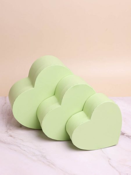/ Коробка Сердце набор из 3шт 22х20х9см однотонный салатовый