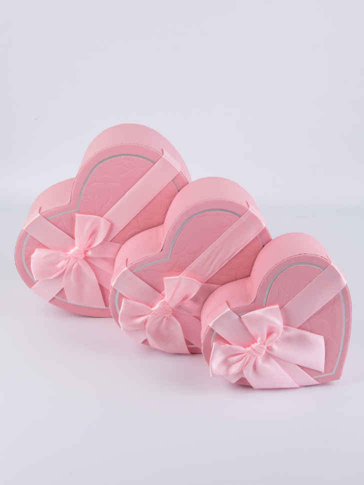 Коробка Сердце набор из 3шт 22х20х9см роза розовый