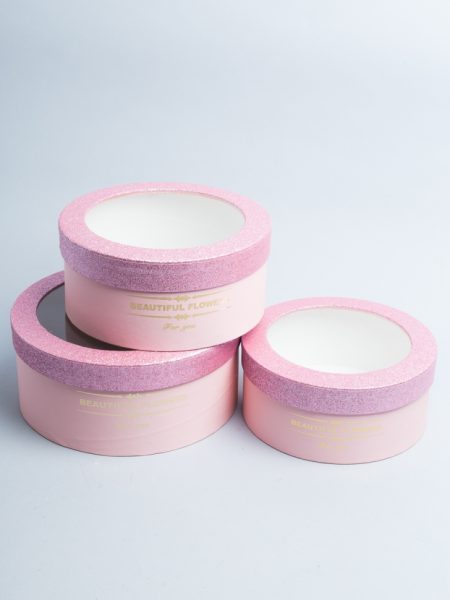 Коробка круг набор из 3шт. 25х25х11см с прозрачной крышкой розовый