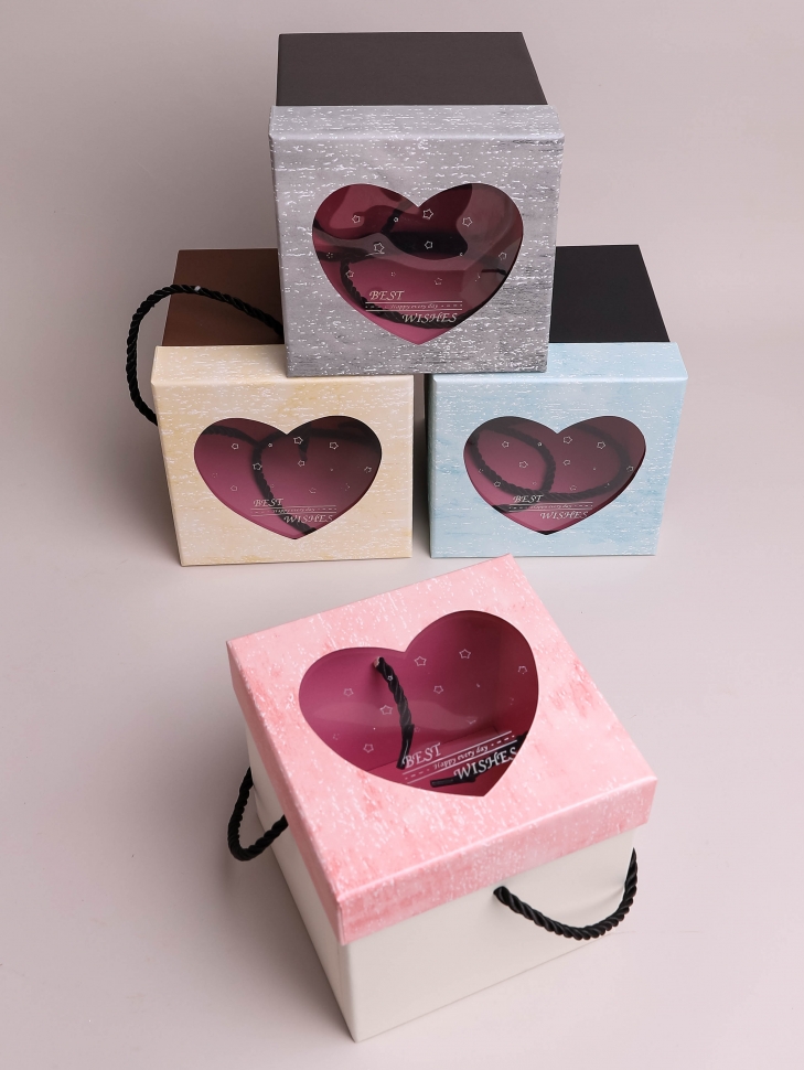 Коробка квадрат 13х13х13см с прозрачной крышкой Сердце микс