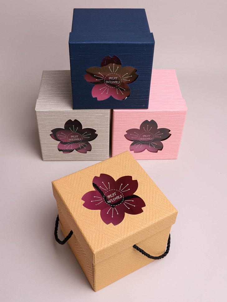 Коробка квадрат 13х13х13см с прозрачной крышкой Цветок микс