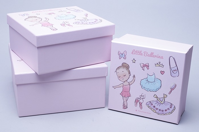 Коробка квадрат набор из 3шт 21*21*10,5см, девочка балерина