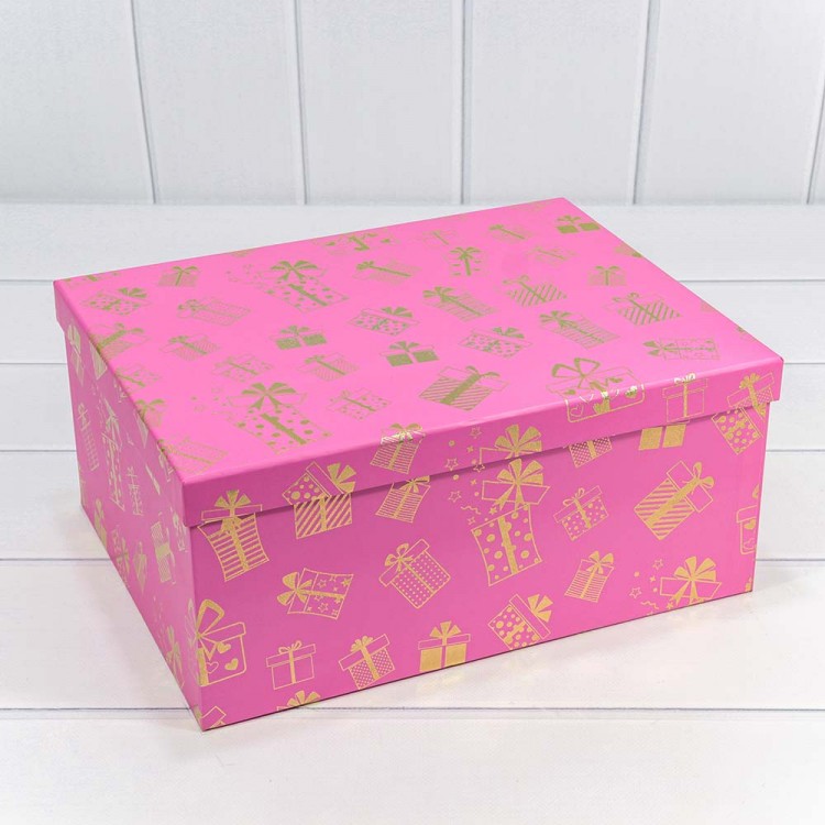 Коробка Новый год (подарки) розовый 32*24,5*14,5см