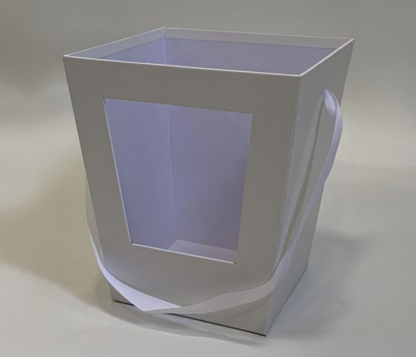 / Коробка под цветы с окном 19x19x22 см./14*14 см., 1 шт., белый