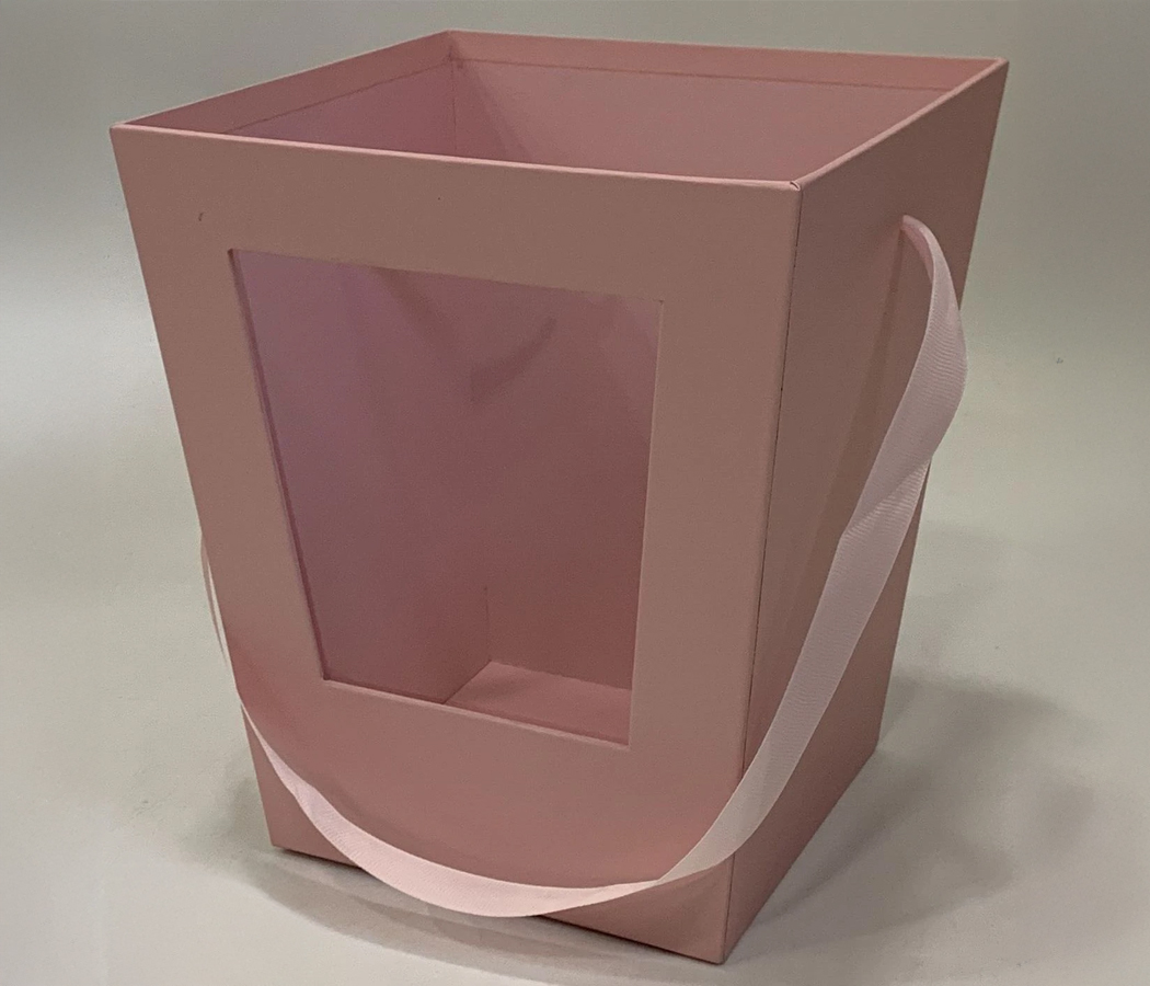 / Коробка под цветы с окном 19x19x22 см./14*14 см., 1 шт., розовый