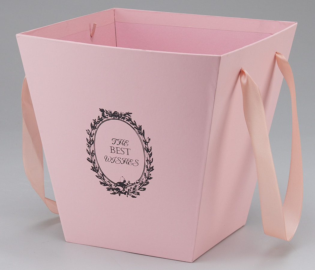 / Коробка под цветы трапеция с ручками 25x25x25 см, св.розовый