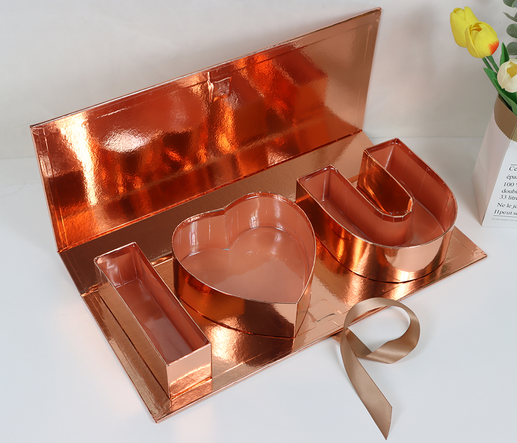 Коробка подарочная “I love you” 45,6×19,5×6,8H см, 1 шт., розовое золото