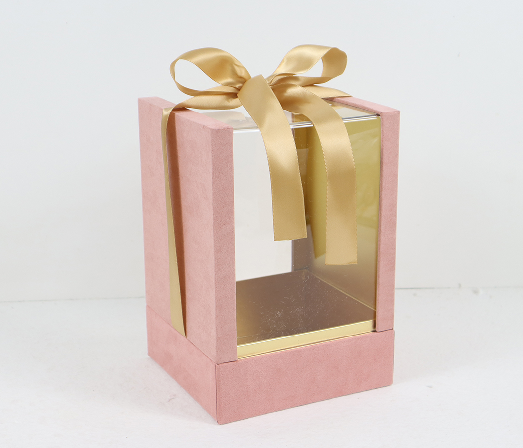 Коробка подарочная с атласной лентой 15,5×14,9×22,5H,1 шт., св.розовый