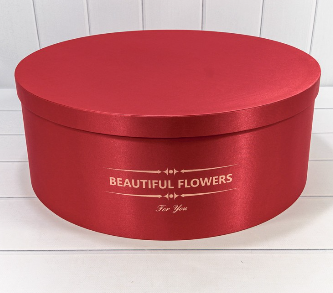 Коробка Круглая 34*13,5 см., с атласной тканью, Красный