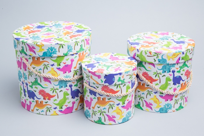Коробка цилиндр набор из 3шт 18,3*17,2см, динозавры