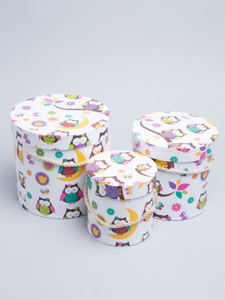 Коробка цилиндр набор из 3шт. 18,3х17,2см 9144-814-90 совы