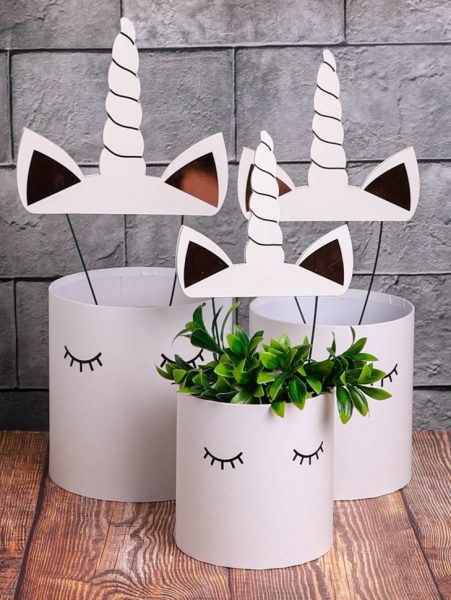 Коробка цилиндр набор из 3шт 20×20,5см Единорог белый
