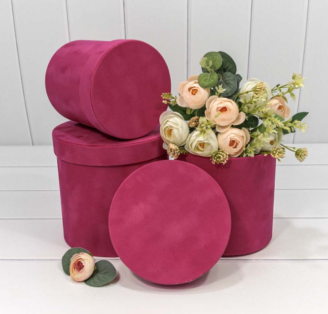 Коробки Цилиндр Набор 1/3 18*17 “Бархатный” Малиновый 1/12