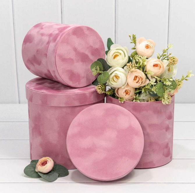 / Коробки Цилиндр Набор 1/3 18*17 “Бархатный” Розовый 1/12