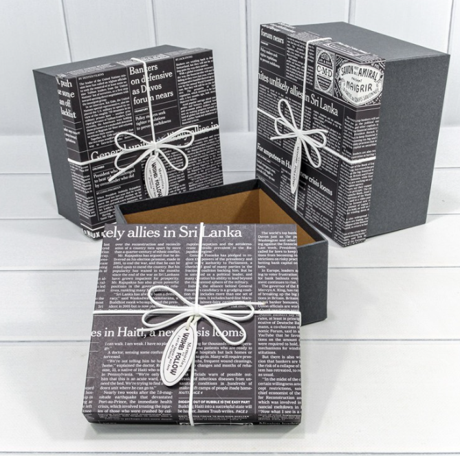 / Коробки Квадратные Набор 1/3 21*21*12,3 с бантиком “Газета” Чёрный 1/18