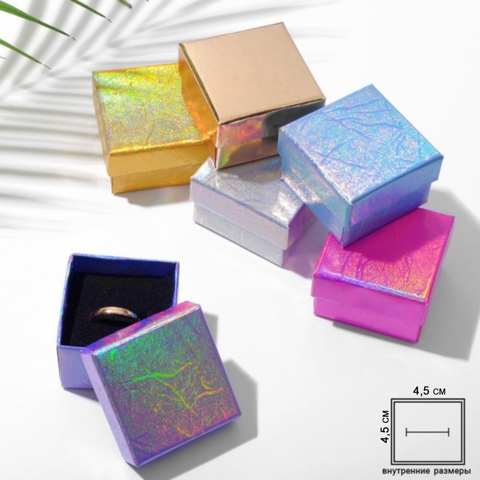 Коробочка подарочная под серьги/кольцо “Голография”, 5*5, цвет МИКС