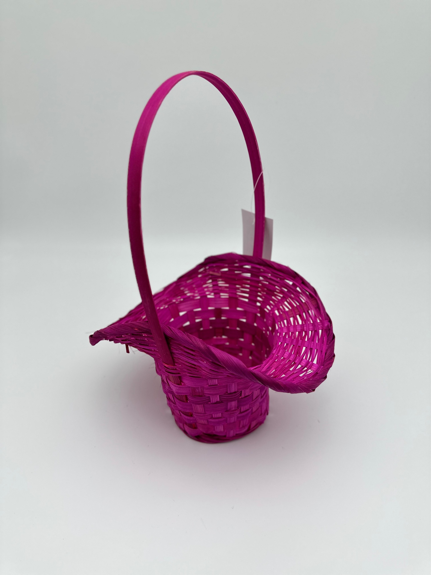 Корзина плетеная (бамбук), D21х13xH14/29 см, розовый