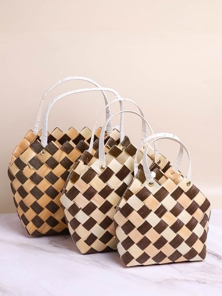 Корзина плетеная (ель) 3шт 34х19х26см белый/серый