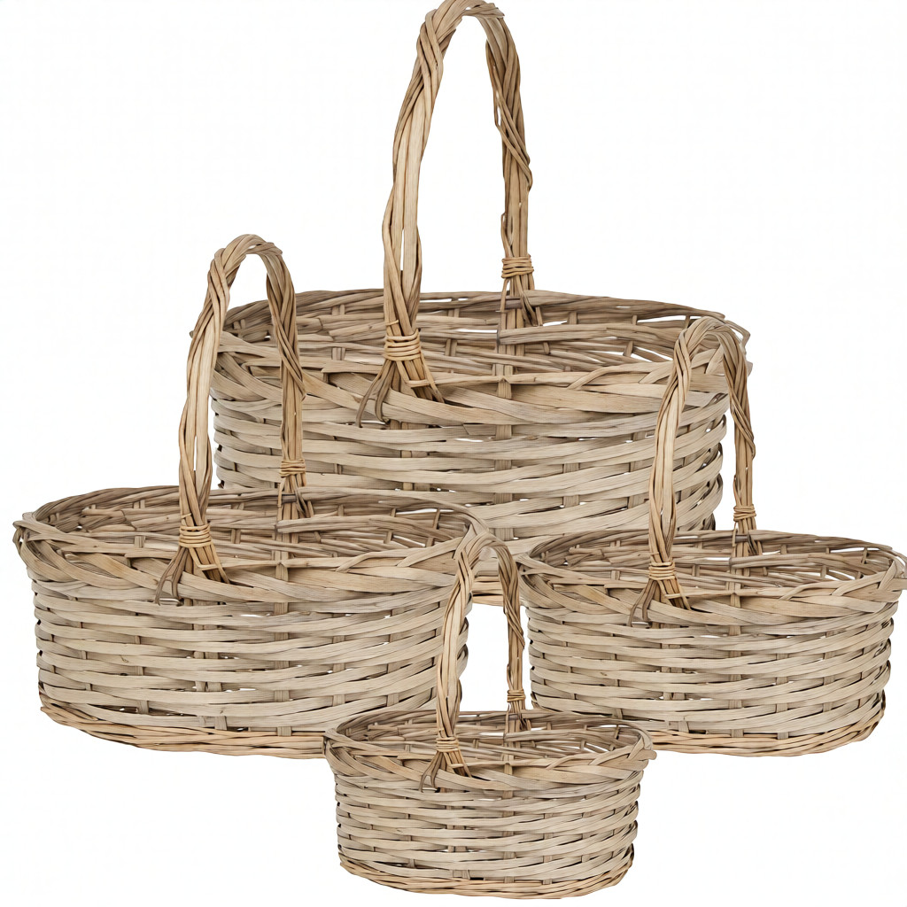 / Корзина плетеная (ива), 55x44xH20/53 см – 34x25xH15/36 см, набор (4 шт), (Натуральный)