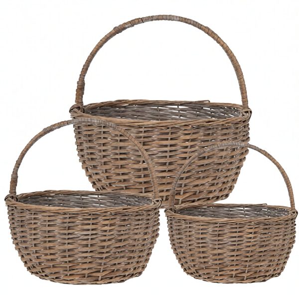 / Корзина плетеная (ива), D48xH22/52 см – D35xH18/37 см, набор (3 шт), (Коричневый)