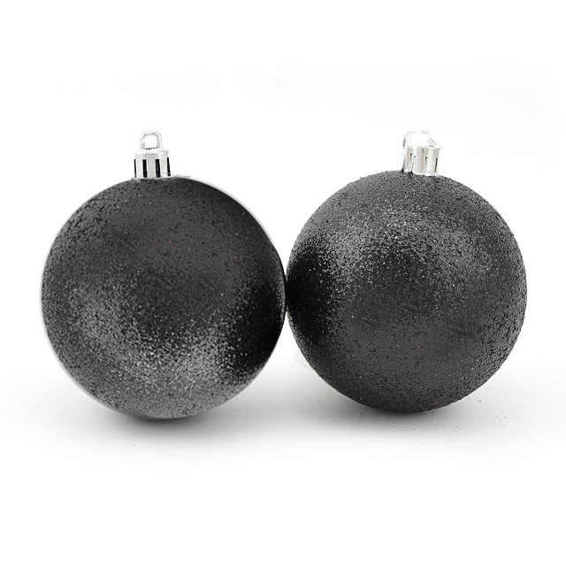 Новогодние шары Черные с глиттером / 8 см / набор 2 шт.