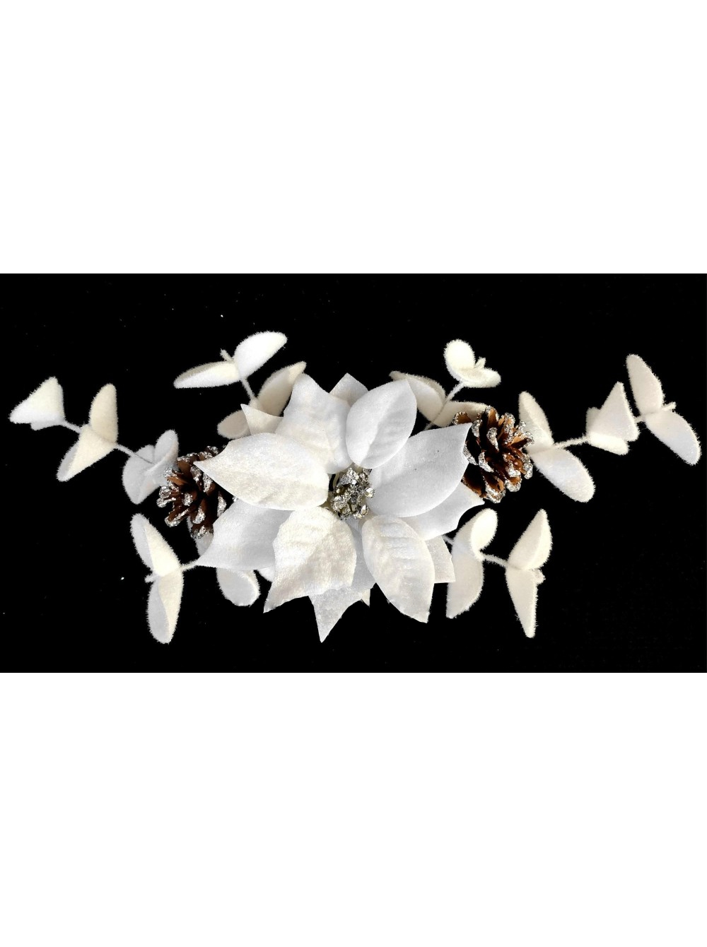 / Новогодний сваг с цветком белой пуансеттии, 40 см