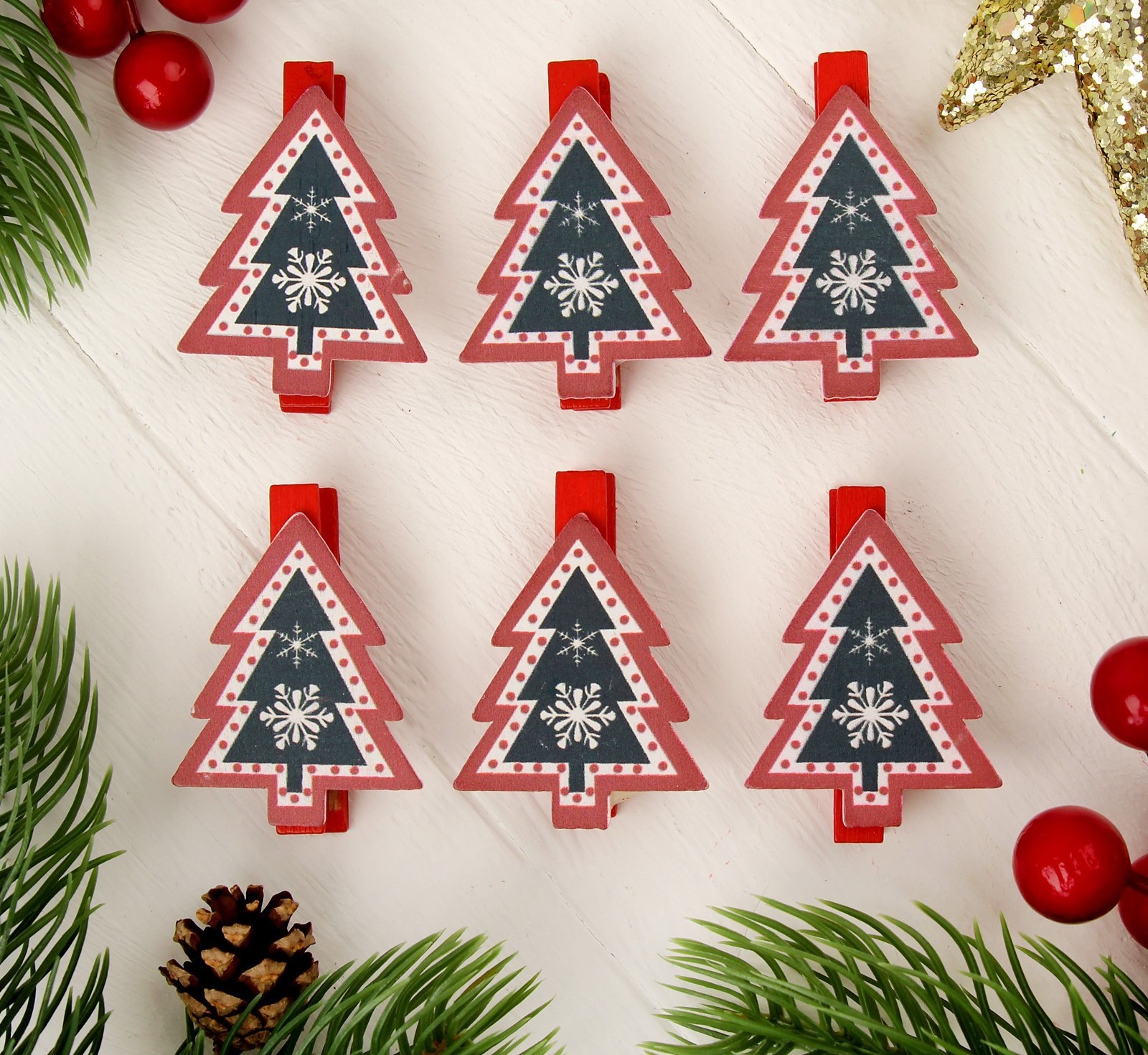 Новый год. Прищепки «Ёлочка», набор 6 шт.
