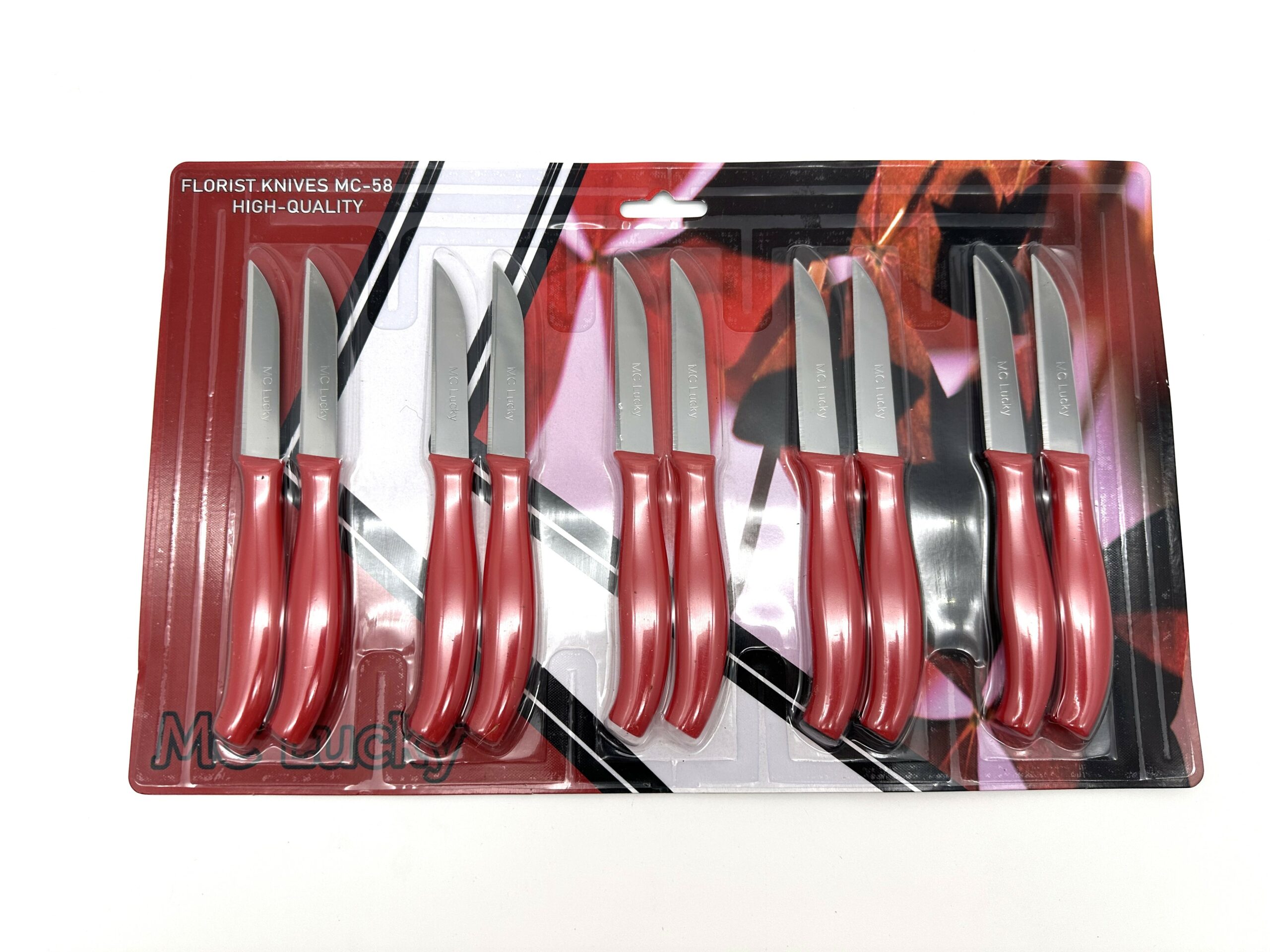 / Нож для флористов MC-58, 16см, длина лезвия 6,5см, красные ручки (нержавеющая сталь 3cR13)