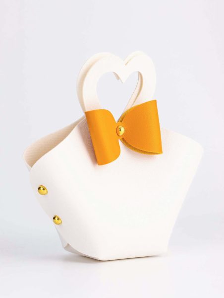 Кожанная подарочная сумочка для бижутерии и сувениров, белая с бантом, 10.5×5×6 см