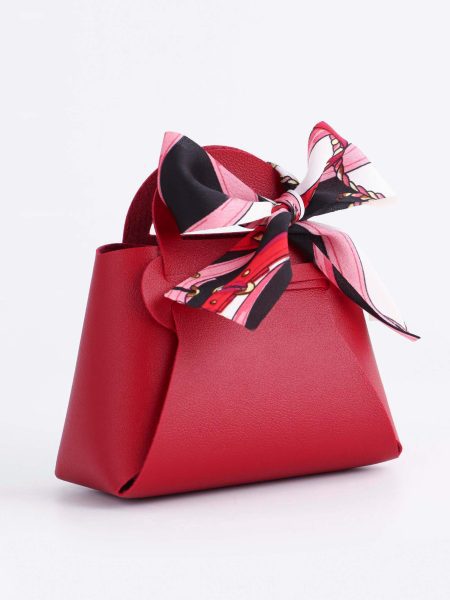 Кожанная подарочная сумочка для бижутерии и сувениров, красная с бантом (лента), 13×12×5.5 см