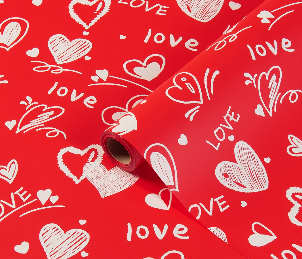 / Упак. материал флористическая пленка “Магия любви”, 65мкр, 58 см х 10 м, красный