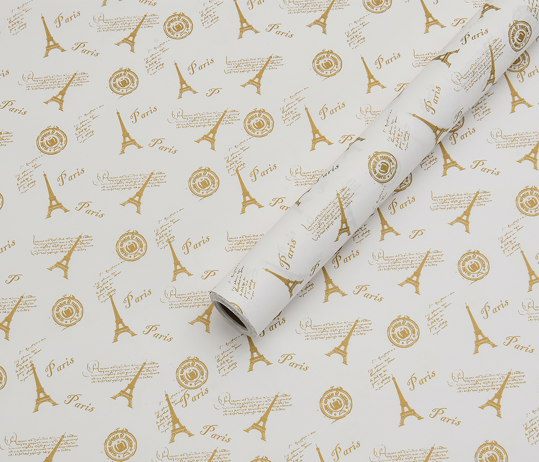 Упак. материал флористическая пленка “Париж” 65 мкр, 57 см х 10м, белый с золотом