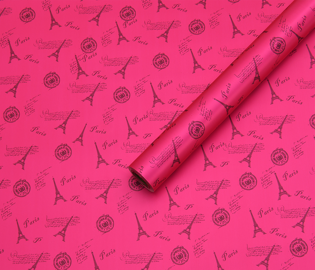 Количество товара Упак. материал флористическая пленка "Париж" 65 мкр, 57 см х 10м, фуксия с серым