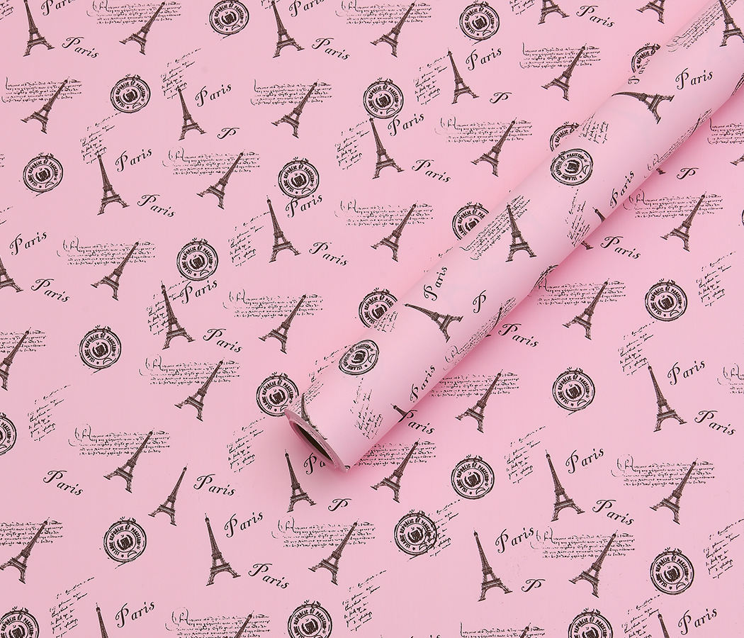 Количество товара Упак. материал флористическая пленка "Париж" 65 мкр, 57 см х 10м, розовый с серым