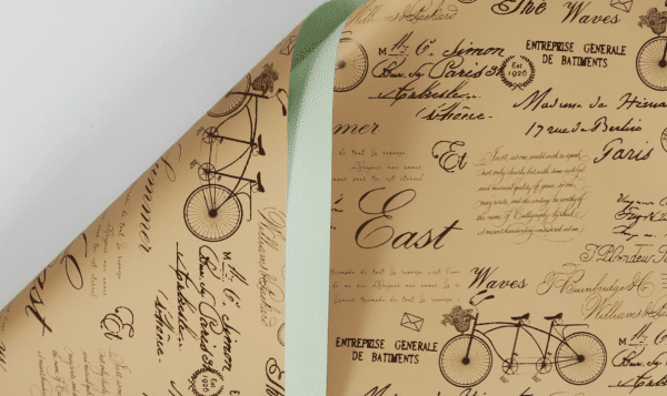 / Упак. материал флористическая пленка “Винтажный велосипед”, 65 мкр, 58 см х 10 м, пастельно-мятный