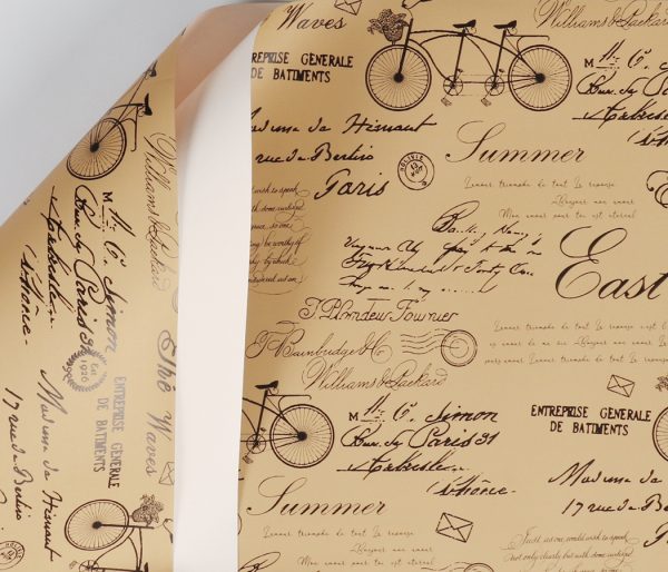Количество товара Упак. материал флористическая пленка "Винтажный велосипед", 65 мкр, 58 см х 10 м, пастельно-розовый