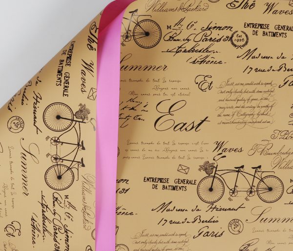 Количество товара Упак. материал флористическая пленка "Винтажный велосипед", 65 мкр, 58 см х 10 м, розовый