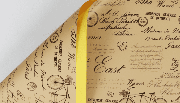 Количество товара Упак. материал флористическая пленка "Винтажный велосипед", 65 мкр, 58 см х 10 м, желтый