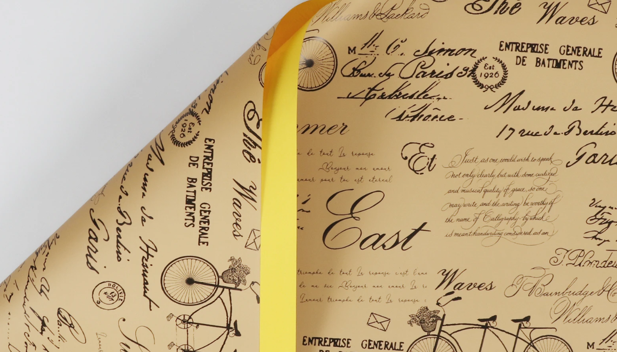 Упак. материал флористическая пленка “Винтажный велосипед”, 65 мкр, 58 см х 10 м, желтый