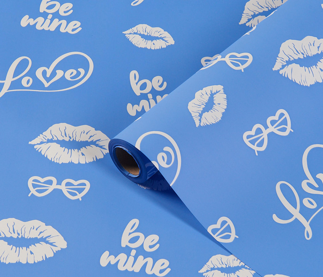 Упак. материал флористическая пленка “Поцелуй”, 65мкр, 58 см х 10 м, голубой