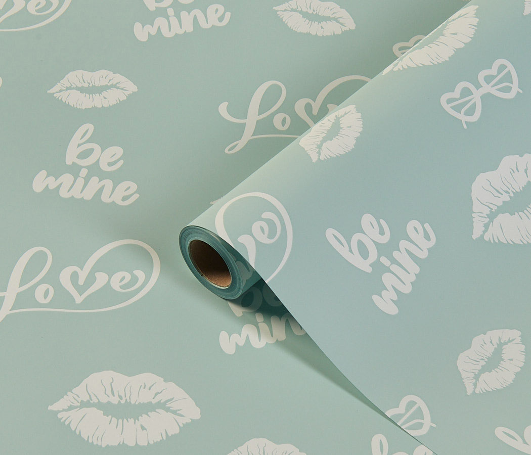 Упак. материал флористическая пленка “Поцелуй”, 65мкр, 58 см х 10 м, пастельно-голубой