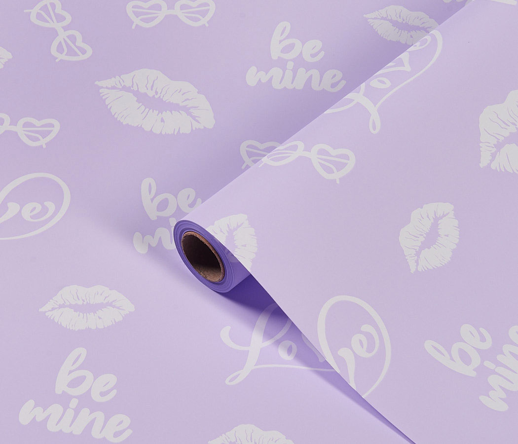Упак. материал флористическая пленка “Поцелуй”, 65мкр, 58 см х 10 м, пастельно-сиреневый