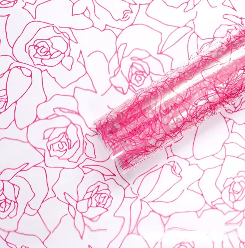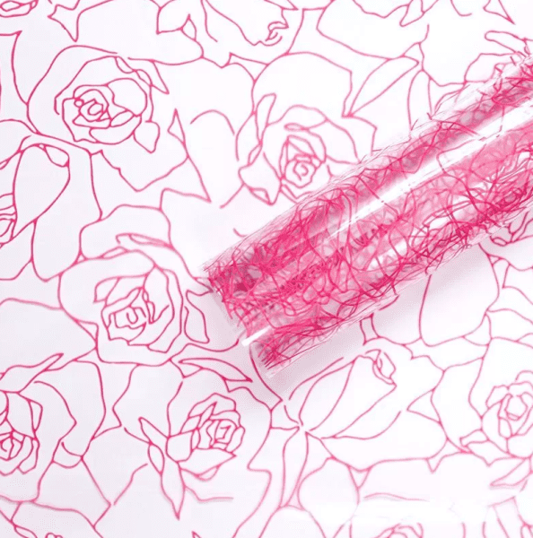 Количество товара Упак. материал флористическая пленка "Кружевная роза", 50 мкр, 58 см х 10 м. ярко-розовый