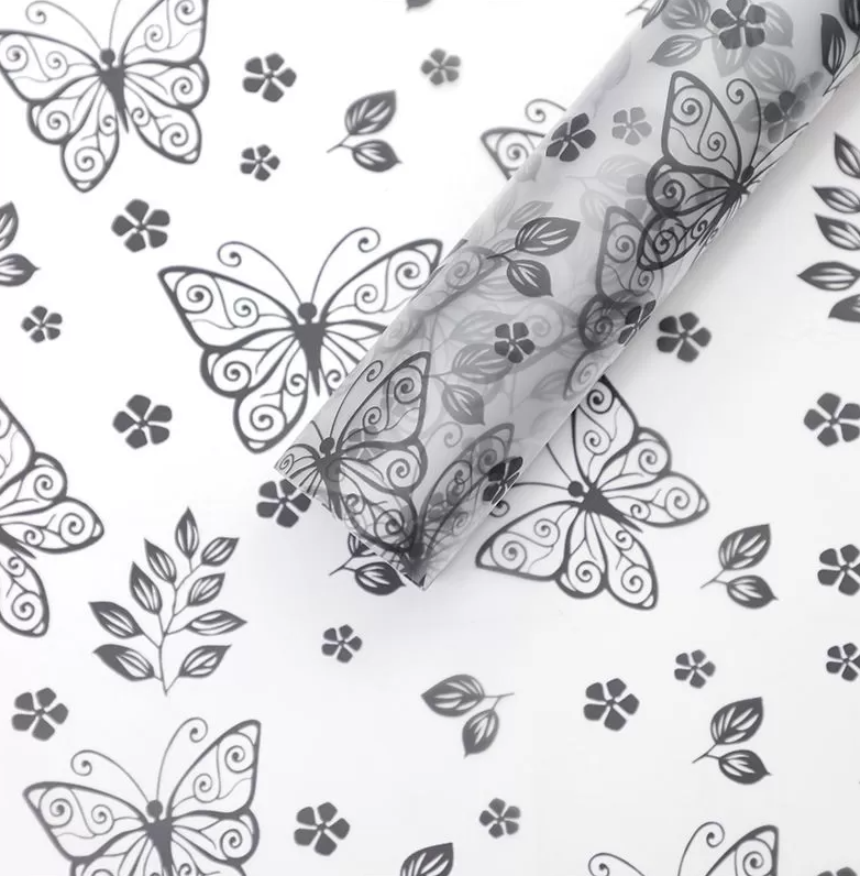 / Упак. материал флористическая пленка “Крылья бабочки”, 50 мкр, 58 см х 10 м, серый