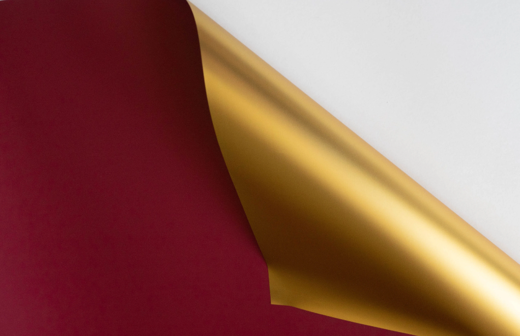 Упак. материал флористическая пленка с золотом, 70 мкр, 58 см х 10 м, винный